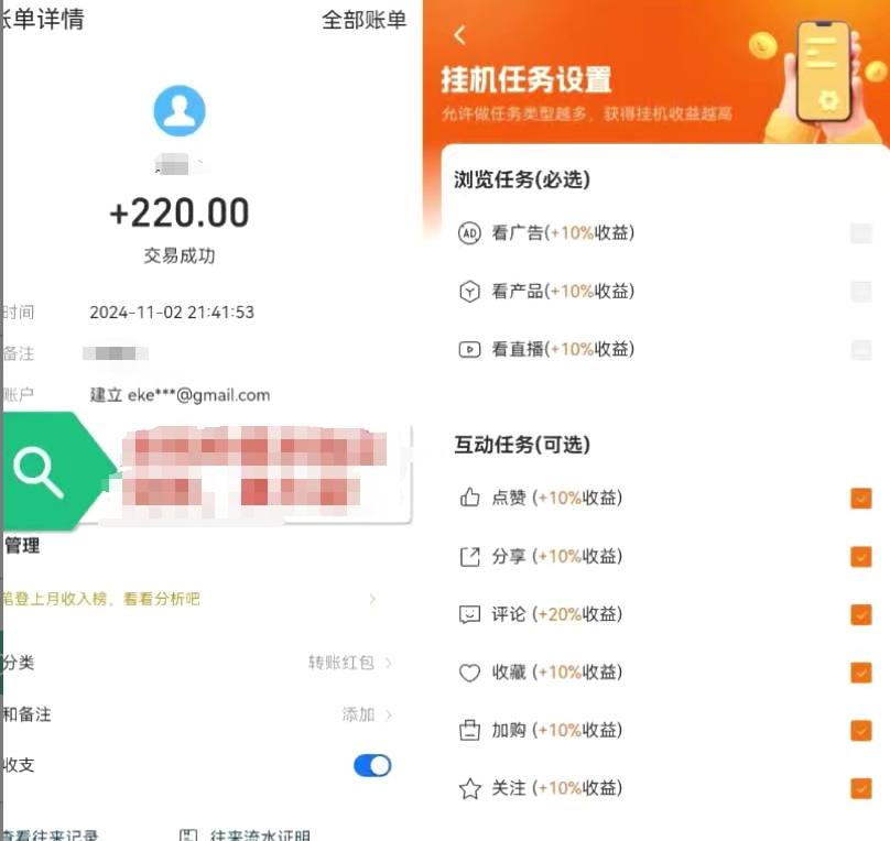 我们这个项目是一个没有任何操作,就可以实现睡后收入的全自动挂JI平台,主要是将你的淘宝闲置账号出租给平台,系统就会全自动执行任务薅羊毛,任务类型有看广告、看直播、看商品等可以赚钱的任务,或者参与其他形式的平台激励活动,平台每天会把利润按照比例分配给我们,双赢的一个模式,支付宝提现24小时到账,一般几个小时就可以到账,非常的绿色安全靠谱。通过下载我们的软件,登录注册淘宝,然后进行挂JI,日入1-3元,号越多赚的就越多赚的就越多,每个小号的收益约等于我们存放1万元在余额宝的利息收益。注册绑定淘宝账号送5元,直接提现,而且还能够通过提高等级来增加挂JI收益(等级越高收入越高),直推一人绑定账号奖励5-30元,挂JI挂提成5%-30%,平台抽取25到150.够5元可提以提现,全程零播,安全绿色,不封号,是最新的一个项目,大家看到了就赶紧上车行动起来吧